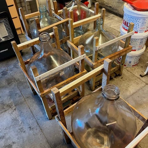 Startsæt. Ballonflasker og plast beholder til vin/øl fremstilling