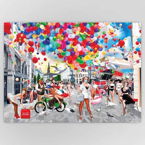 New York motiver i turkis/pink/mine farver. 110x120 cm. Nypris: 11.000 kr.
