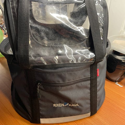 Længde: 51 cm, bredde: 33 cm, højde: 19 cm. Inkl “låg” er højden 40 cm. Låget kan let spændes af. Moteringsdelen, som sidder på cyklen hedder Klickfix (og giver ekstra sikkerhed) medfølger ikke, men kan købes bl.a. hos cykelhandlere til ca 200 kr. Klickfix delen er kompatibel med andre typer af cykelkurve fra Klickfix