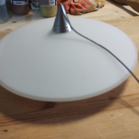 Glasskærmen er i hvid glas