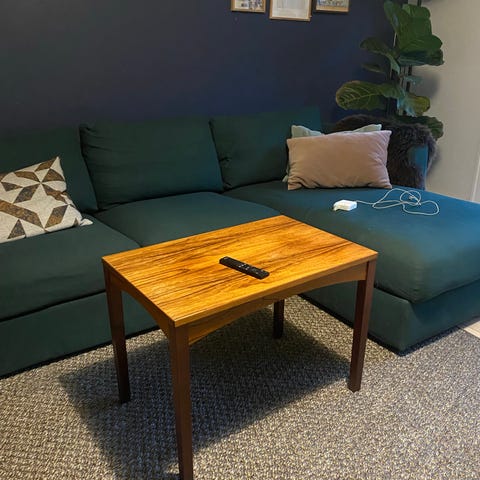 Sofabord med bordplade i palisander og stel af stål.