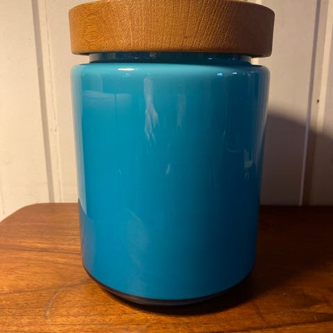 Holmegaard - Kastrup Glasværker Palet Orangerød Urtepotteskjuler / Krukke Design Michael Bang 1969, H. 11,5 cm Ø 12,5 cm, som ny, sælges.