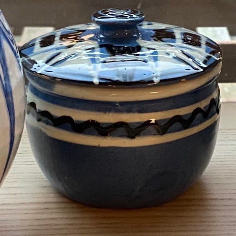aluminia blå viol sjælden lågkrukke bemærk brugsspor #aluminia #keramik147 diameter 13cm højde 6cm