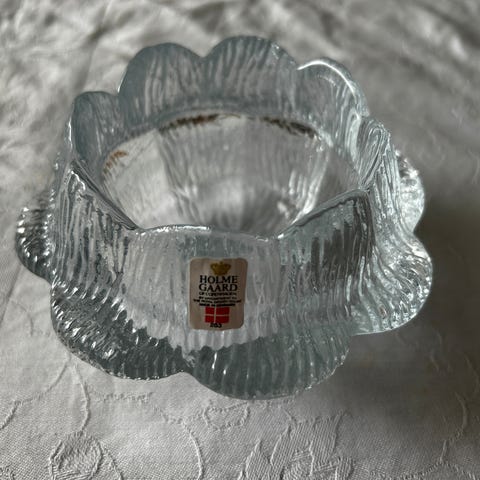 Fejlfri lysestage fra Holmegaard model åkande. Den er ca 10 cm i diameter. Sender gerne.