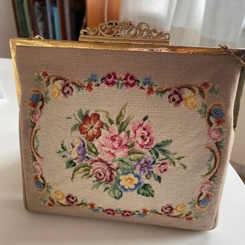 Meget smuk vintage petit-point selskabstaske, brodret af min mor i 1960’erne.