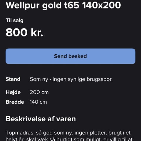 Jysk Topmadras Gold T80 140*200 sælges, da vi ikke får brug for den mere.