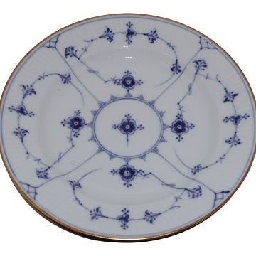 Royal Musselmalet Riflet med guldkant, lille brødtallerken.