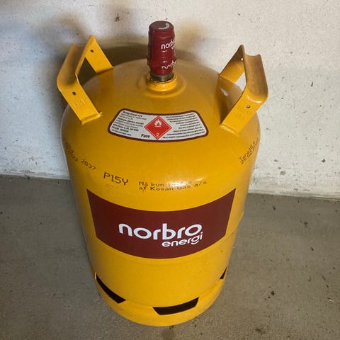 Ny fyldt plomberet 11 kg gasflaske sælges