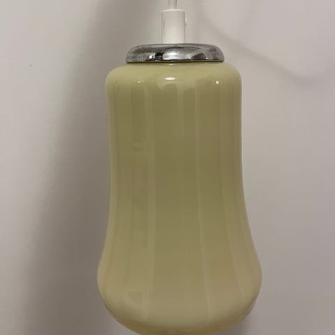 Pendel, Ældre glas lampe med børstet stål indsats og rød ledning, fatning og ledning skal nok gennemgås.