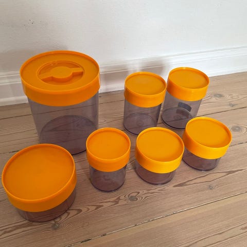 Gul Opbevarings glas Erik Kold H. 14dia. 10 cm nr.7015.. pris 75 kr solgt