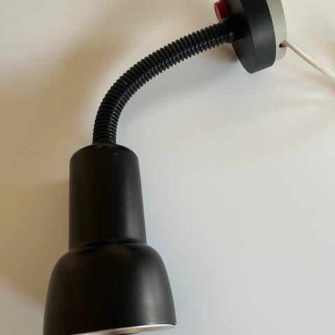 Louis Poulsen, Sorte Louis, væglampe, Sorte Louis er en altmulig lampe, der dækker nærlysbehov. Den er forsynet med en specialreflektor, der med en 25- eller 40 watt glødepære til lille fatning giver et rigeligt, jævnt fordelt arbejds- og læselys. Lampen kan drejes i alle retninger. Sorte Louis findes normalt i 3 versioner: Vægmonteret, med skruetvinge og flangemodel med trykafbryder i flangen. I denne version er den monteret på skinne.