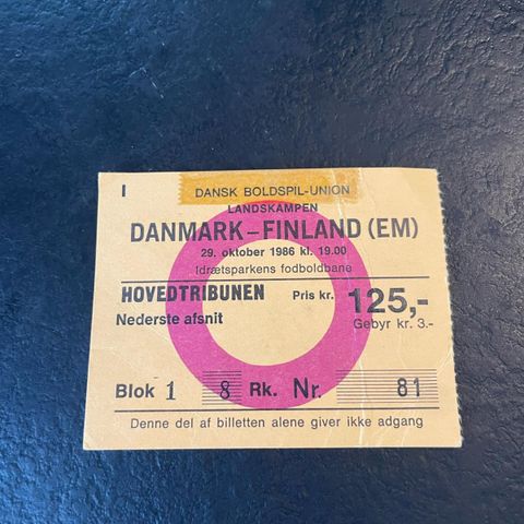 The ticket from the match where Denmark won the European Championship 1992 with a 2-0 win, over Germany.