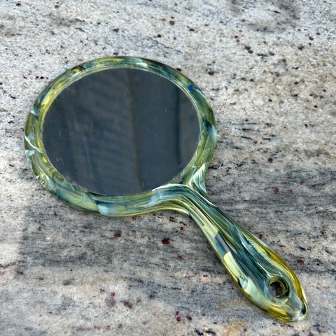 Spejl med forstørrelses spejle, Retro, Funky lilla spejl, med to små forstørrelses spejle på bagsiden....