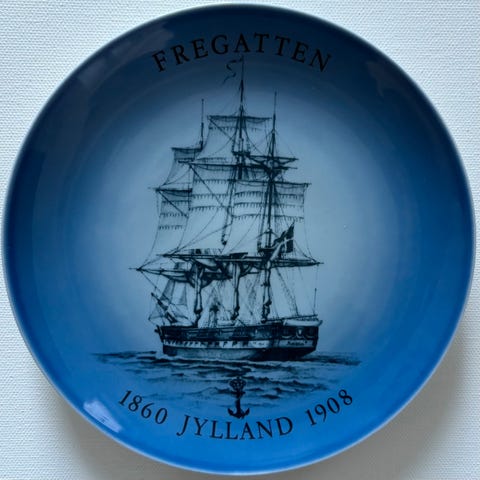 Bing & Grøndahl udgav gennem en årrække en række fine blå platter med danske skibe gennem tiderne - kaldet Skibsplatterne.