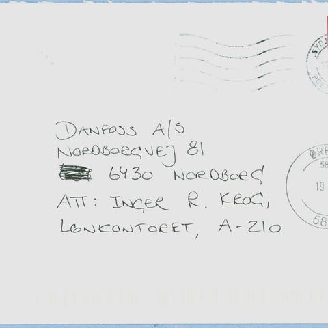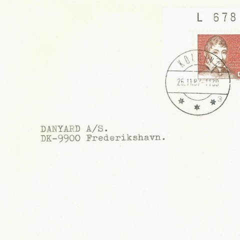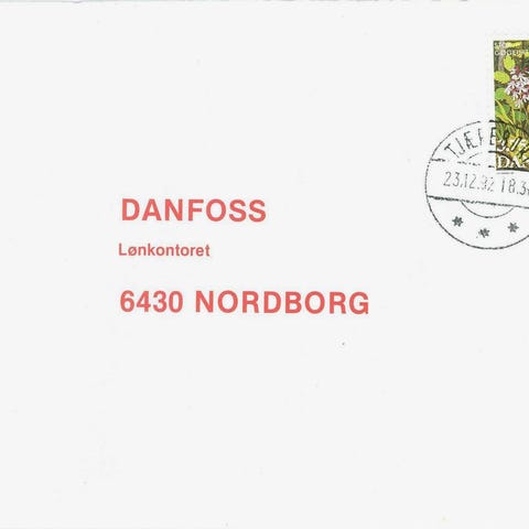 Pænt brev med flotte brotypestempel Vejle B 10.6.1992. Sendt til Augustenborg.