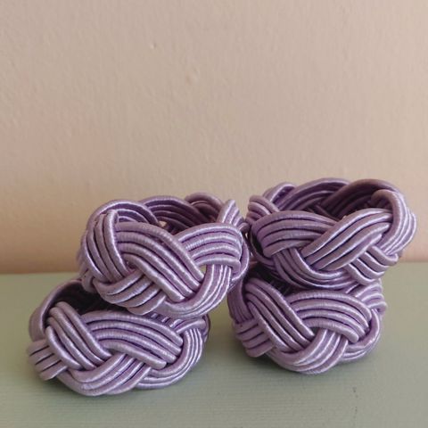 6 søde, mørkerøde, firkantede servietringe i glas.