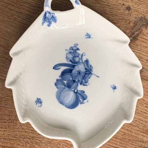 Flot Blå Blomst fad (flettet bladformet asiet) fra Royal Copenhagen.