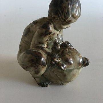 Royal Copenhagen Stentøjsfigur Pige med hat med Grøn glasur No 20874 VI SENDER
