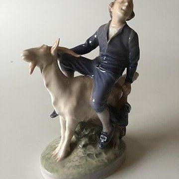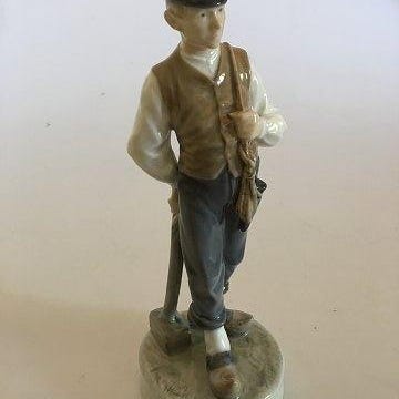 Royal Copenhagen Figurine af Skoledreng med Kappe og Taske No 4503. Af Holger Christensen. 19 cm H. 1 Sort. i fin stand.