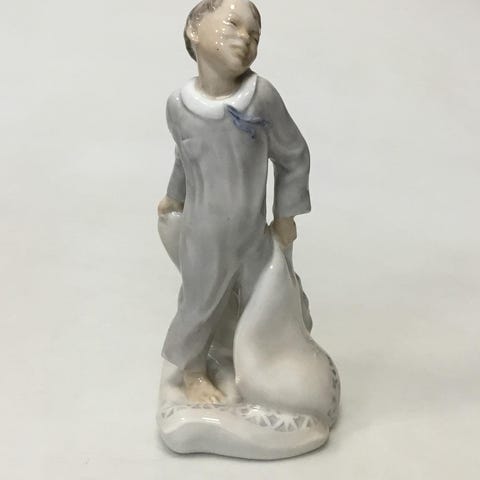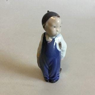 Royal Copenhagen Figurine af Skoledreng med Kappe og Taske No 4503 VI SENDER