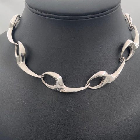 Royal Copenhagen Sterling Sølv Halskæde med Hvidt Hjertevedhæng af Porcelæn. ...