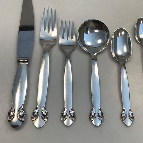 Georg Jensen Sterling sølv Fiskebestik model 55. Sæt til 12 personer med VI S...