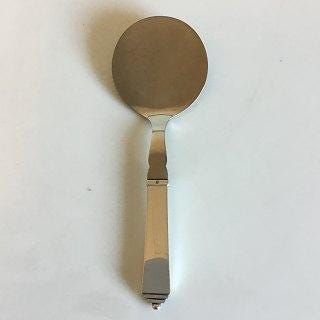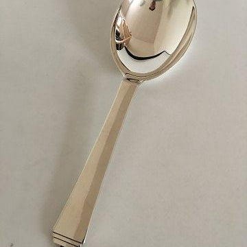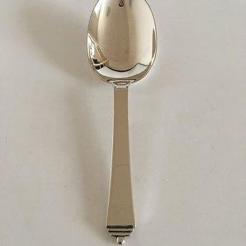 Georg Jensen Pyramide Sterling Sølv Servietring No. 115. 7 cm L (2 3/4). 5.5 cm indre dia (2 11/64). Vægt 41.3 gram. Designet af Harald Nielsen (1892 - 1977) Harald Nielsen var lillebror til Georg Jensens tredje kone, Johanne. Han ville være maler, men blev trukket ind i Georg Jensens sølvsmedje, hvor han startede som lærling i 1909. Derfra arbejdede han sig op som designer/direktør for smedjelærlingeskolen. I 1954 blev han smedjedirektør og i 1958, blev han kunstnerisk leder, en stilling an besad indtil 1962. Nielsens rolle som lærlingeskoleleder var særlig vigtig efter Jensens død i 1935, da Nielsen sikrede den forsatte høje kvalitet af firmaets design og produktion, ved at rekruttere dygtige unge sølvsmedje og designere, samt uddanne dem efter Georg Jensen Sølvsmedjens høje standarter.