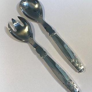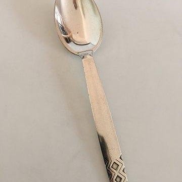 Georg Jensen Sterling Sølv Rune Spisegaffel No 012. Måler 18,5 cm Designet i 1937 af Johan Rohde (1856 - 1935). Johan Rohde var grafiker, maler, arkitekt, designer og kritiker. I 1880’erne, var Rohde en vigtig kunstner i Tyskland og Danmark. Han udfordrede de traditionelle måder at undervise på Det Kongelige Danske Kunstakademi og var førende i tilblivelsen af Den Frie Udstilling, som havde til formål at vise værker af kunstnere, hvis arbejde ikke blev accepteret. Han designede genstande til hverdagen - møbler, sølvtøj og korpus til hans eget hjem. Rohde og Georg Jensen mødte hinanden første gang, da Rohde bestilte Jensen til at udføre et af hans korpusdesigns. Da dette var vellykket, besluttede de at fortsætte samarbejdet. De arbejdede sammen i mange år efter.