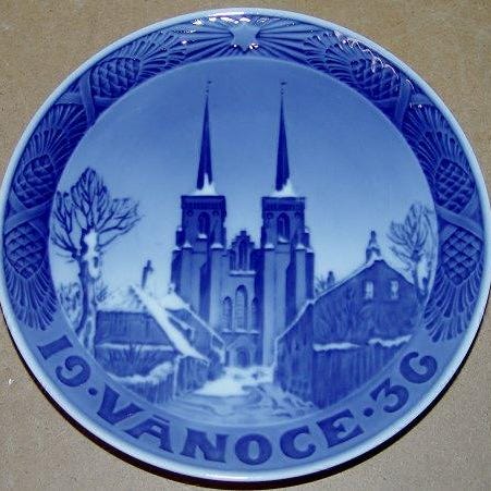 Royal Copenhagen Juleplatte fra 1942 med tjekkisk indskription Vanoce VI SENDER
