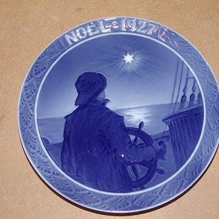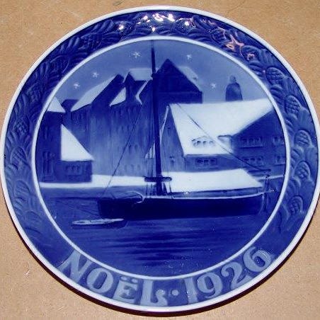 Royal Copenhagen Juleplatte fra 1936 med Fransk indskription Noel VI SENDER