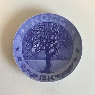 Royal Copenhagen Juleplatte fra 1920 med Fransk indskription Noel. Måler 18 cm
