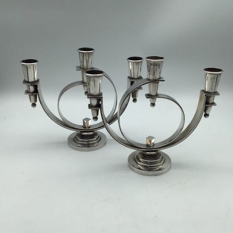 Georg Jensen Sterling Sølv Par 3-armet lysestager No 537B(2) (1925-1933) Design Harald Nielsen H 18 cm B 20 cm Samlet vægt 1185gr