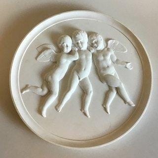 Royal Copenhagen Biscuit Pjerrot Væg vase fra 1850-1860. Måler 16cm og er i perfekt stand.