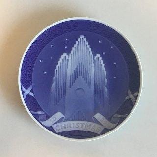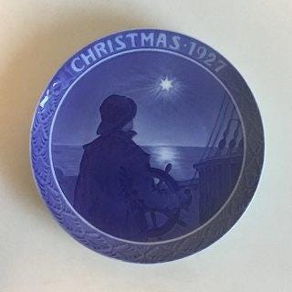 Royal Copenhagen Juleplatte fra 1928 med Engelsk Tekst Christmas VI SENDER