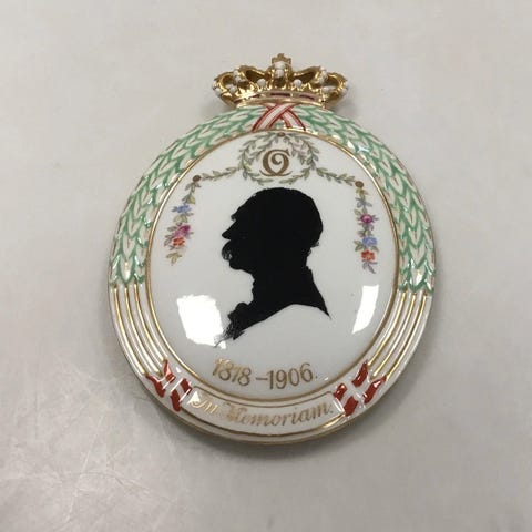 Royal Copenhagen Flora Danica Silhuet Platte Kong George of Grækenland 1843 - 1913. No RC-S5. Måler 10,2 cm x 7,6 cm