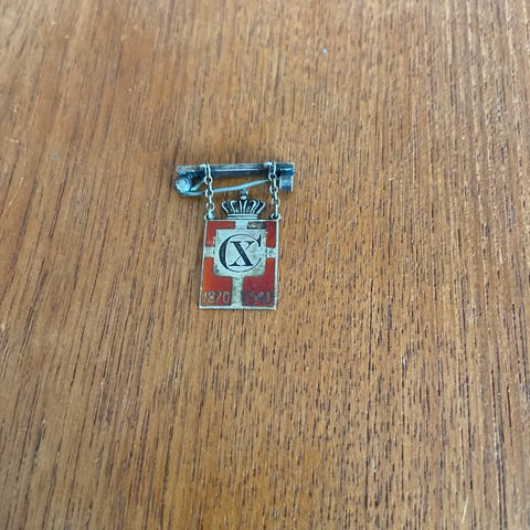 Georg Jensen Kongemærke i Sterling Sølv, 1870-1940. Vejer 4,3 gram. Damemodel Kongemærket, mærke af emaljeret sølv eller guld med dannebrogsmotiv og Christian 10.s monogram, forneden årstallene 1870-1940 hhv. 1870-1945. Kongemærket blev fremstillet 1940-47 efter forlæg af Arno Malinowski af Georg Jensen Sølvsmedie i 1.178.534 eksemplarer. Et provenu på over 1,5 mio. kr. blev indbetalt til Christian 10.s Fond, der yder støtte til kulturelle formål og bekæmpelse af sygdom. Mærket blev båret som national manifestation af både mænd og kvinder i jakkeopslag, på frakker o.l.