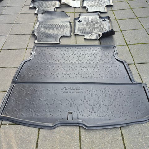 Super lækre måtter til RAV4, De passer perfekt og bagaerumsmåtten er skridsikker, så der er ikke noget der rutsjer rundt. De er brugt i 2 år og der er ikke rigtig noget slid på dem