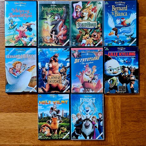 Disney Klassikere, Samling af Disney Klassikere på DVD. Komplet fra 1-55. Mange af dem har aldrig været i en dvd maskine. Flere er med folie på. Sælges kun samlet. Kom gerne med et bud.