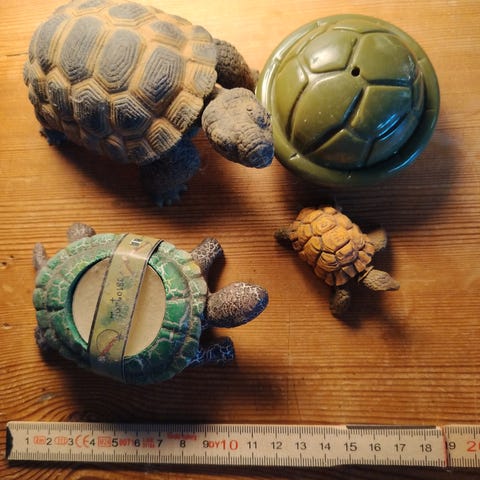 Søde, flotte, facinerende, autentiske og bare anderledes skildpadde figurer. Har blot været en del af en samling. Så som nye. Ikke leget med, blot stået på hylde.