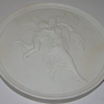 Bing & Grøndahl Biscuit Platte Psyche nærmer sig med Lampen til den sovende Amor No 79. Kopi af Original fra 1841 på Nysø. Måler 15cm x 11cm. Denne vare kan afhentes i følgende butik: Lyngbyvej 155, 2100 Kbh. Ø