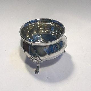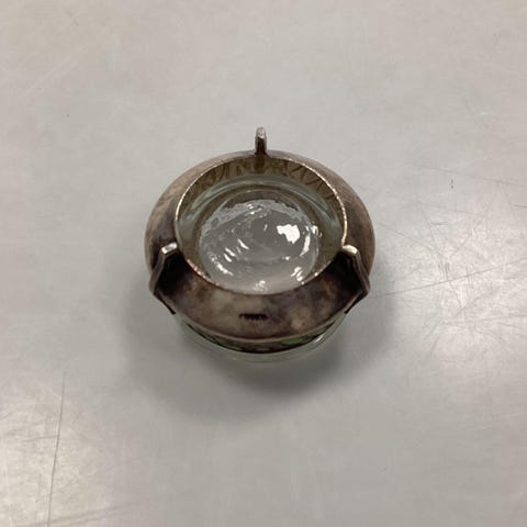 Udenlandsk Sølv Saltkar med blå glas indsats VI SENDER