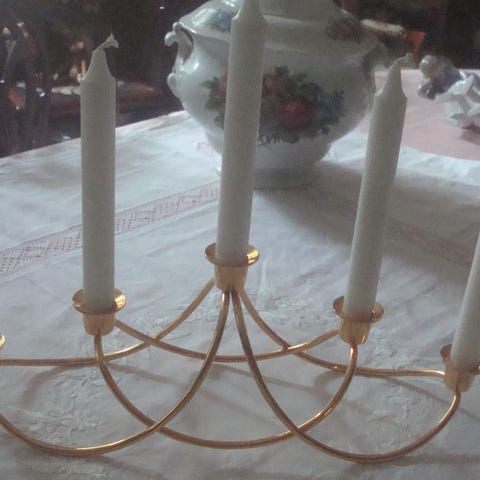 Georg Jensen Harmony Lysestage 2016. Forgyldt rustfrit stål. Design: Maria Berntsen. Måler 14,3 cm x 41,9 cm / 5,62 in. x 16,4 in.
