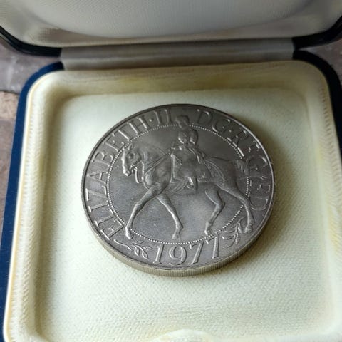 Elisabeth II 1975 Mønt Sølv (2mønter) Størrelse på mønten ca. 5 cm i diameter