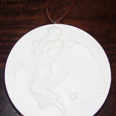 L. Vieth Biscuit gravsteds platte. Måler 20cm (7.87 inch) og er i god stand. Kan monteres med stålwire eller lædertråd til ophæng.