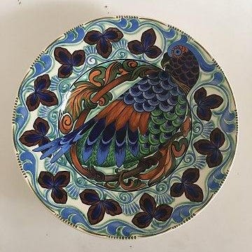 Aluminia Ovalt Fajance Fad No XIX med Påfugle Motiv Signeret. EN.M VI SENDER