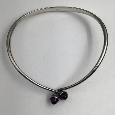 Bent Knudsen Sterling Sølv Armring (Ametyst) Måler Diam Indvendigt 6.5 cm (2.55 inch) Vægt 60.60 gr (2.14 oz) (Lette brugsspor) Denne vare kan afhentes i følgende butik: Store Kongensgade 76, Lyngbyvej 155, 2100 Kbh. Ø