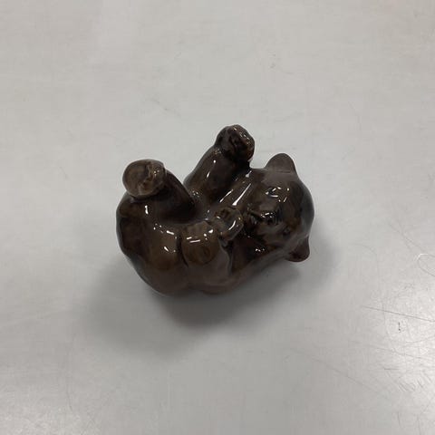 Royal Copenhagen figur af Bjørnemor No. 21520. Designet af Knud Kyhn. Mørkebrun med lysebrune skygger. 1.Sortering, dog med lille brændingsfejl i glasuren, se foto. Måler 22 cm x 13 cm / 8,66 in. x 5,11 in.