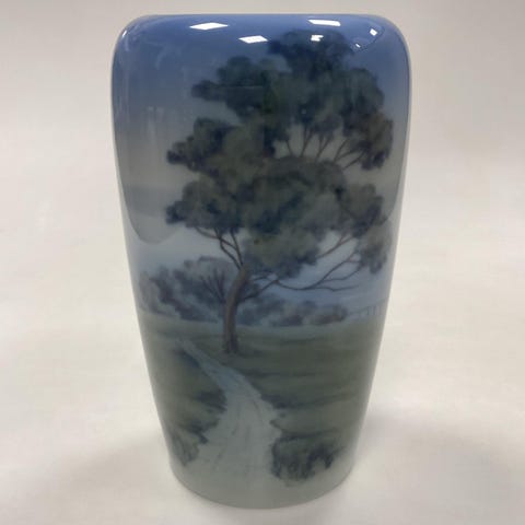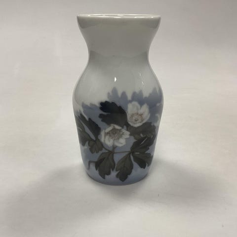 Royal Copenhagen Vase No. 367. Designet af Ivan Weiss. Hvid og blå dekoration. 2. Sortering. Måler H: 15 cm x B: 19 cm x D: 8 cm / H: 5,90 in. x 7,48 in. x 3,14 in.
