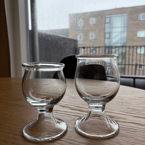 Holmegaard Perle Portvinsglas Måler 10cm / 3.94 inch Holmegaard Perle. Designet i 1966 Glasserien hed i starten Pernille og introduceret i samarbejde med firmaet Ove C. Bjerregaard, som omtalt i Blad Glaspustet senere fik det navnet Perle. Perle glasservice udgik af produktion efter nogle år, men blev relanceret igen i forbindelse med Per Lütkens 60 års fødselsdag i november, 1976.