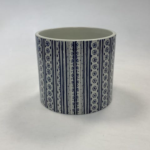 Bjørn Wiinblad Nymølle Urtepotteskjuler - Vinter No. 3024-699. Blå dekoration. Måler 13 cm x 14,5 cm / 5.12 in. x 5.71 in.
